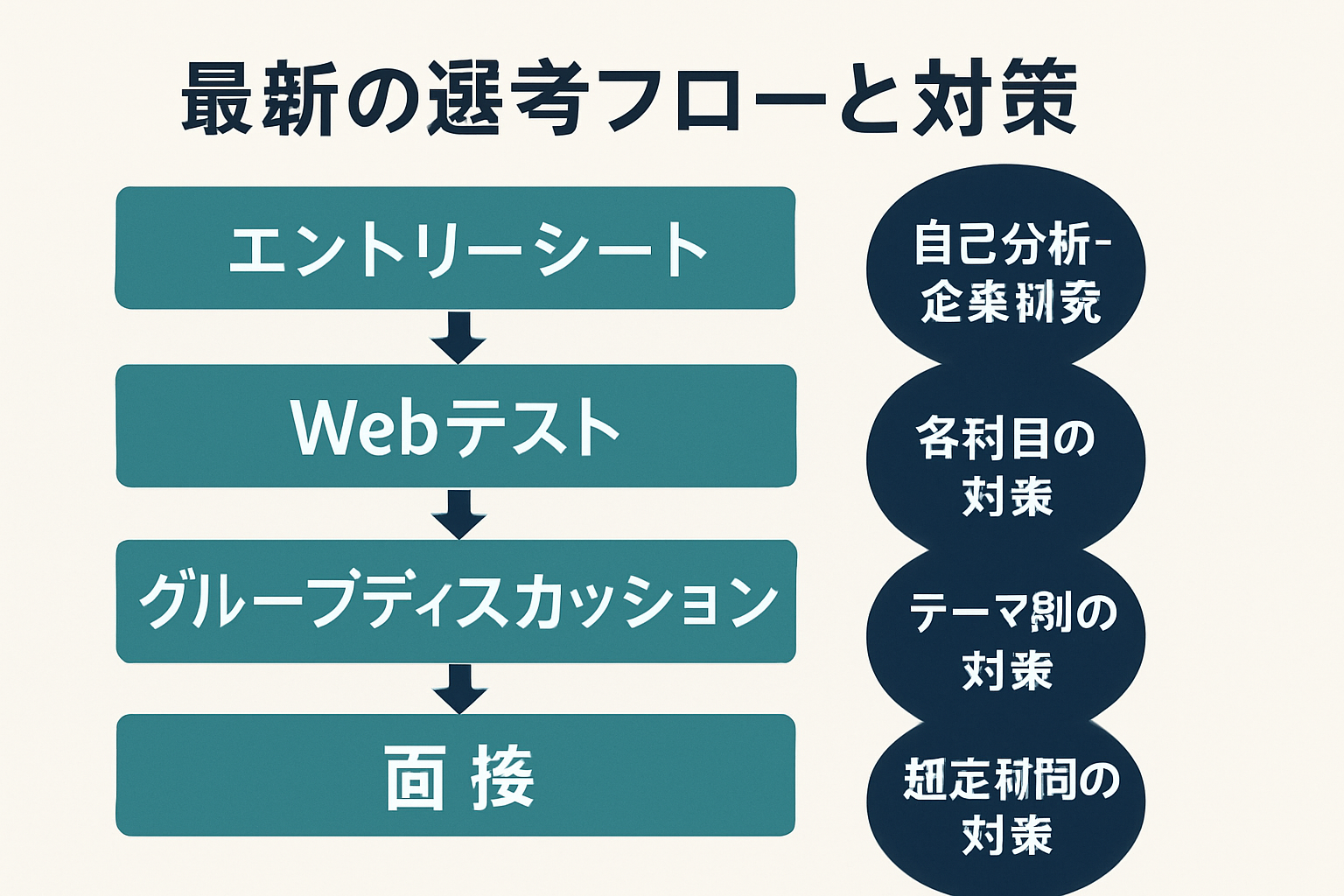 ここでは、一般的な選考フローを基に、各ステップでの対策ポイントを解説します。